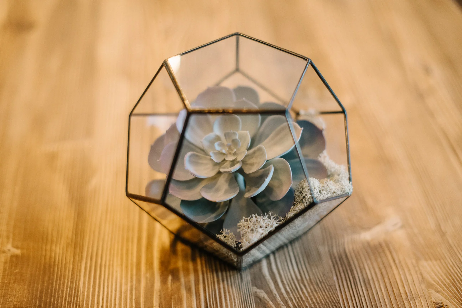 И самый простой выход — искусственные суккуленты, как на фото, которые вообще не требуют ухода, и цвет не поменяют)).